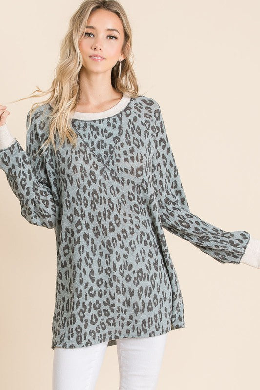 BiBi Leopard Hacci Round Neck Long Sleeve T-Shirt