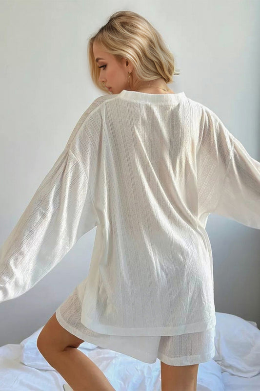 Basic Bae Texture Button Up Round Neck Long Sleeve Top